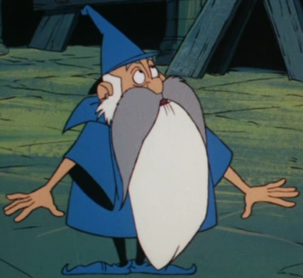 He was a short, elder magician wearing blue clothes and had a long gray beard.